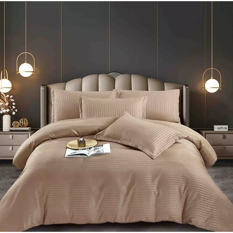 Lenjerie de Pat Damasc 6 Piese, Bej Inchis - JO343
