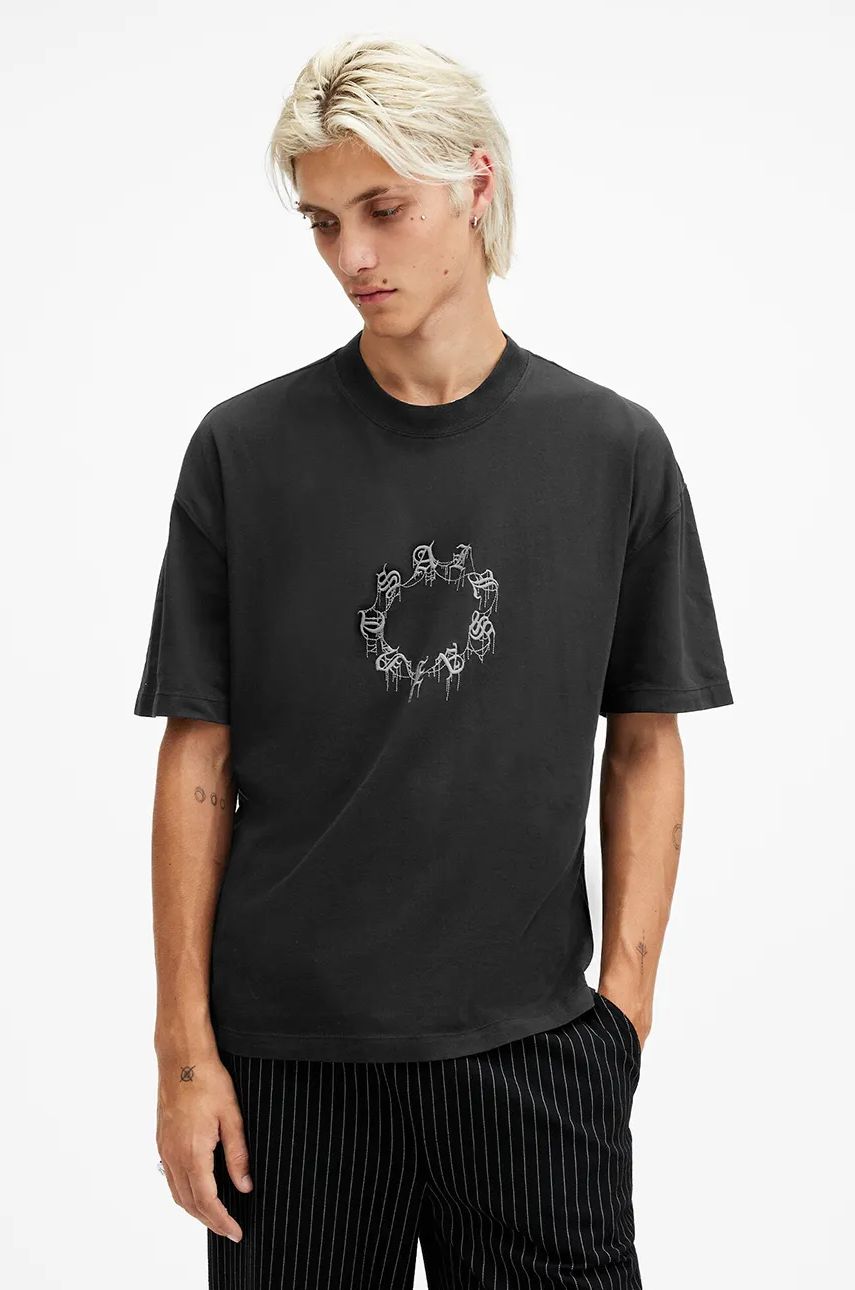 Indiferent de nevoile tale, AllSaints tricou din bumbac KNOX culoarea gri, cu imprimeu, M048PC din categoria Îmbrăcăminte îți poate aduce un echilibru perfect între calitate și preț, cu avantaje practice și moderne.