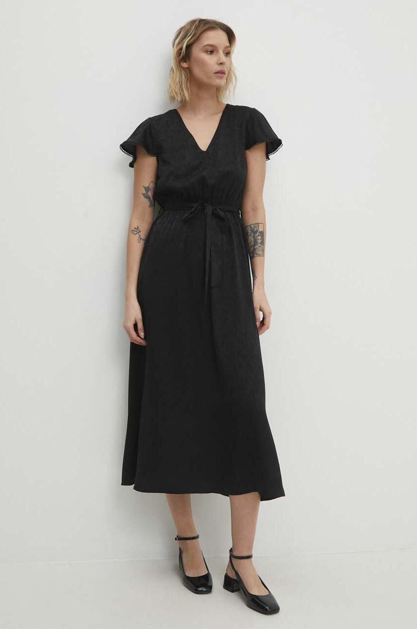 Answear Lab rochie culoarea negru, midi, evazată - 0 | YEO