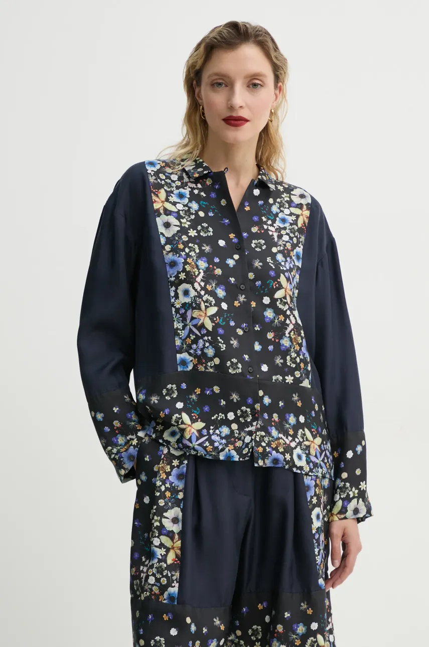 Indiferent de nevoile tale, MUNTHE camasa de matase FAIZA culoarea albastru marin, cu guler clasic, relaxed, 251101025118 din categoria Femei / Îmbrăcăminte / Bluze subțiri şi cămăși / Cămăşi îți poate aduce un echilibru perfect între calitate și preț, cu avantaje practice și moderne.